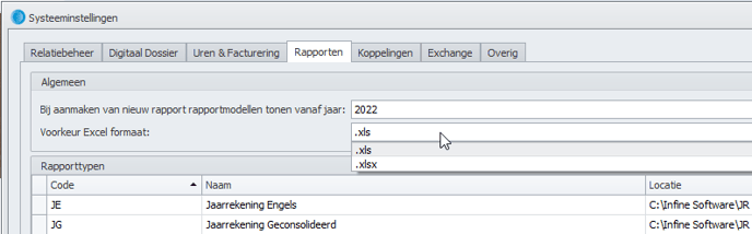 Standaard gebruikt Infine het Excel formaat 'XLS' voor de opslag van rapporten. Dat heeft voordelen: Het opent zowel in oude als nieuwere versies van Excel, het kan macro's opslaan en openen van bestanden verloopt vlot.